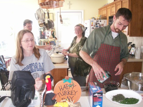 Becky is helping Rachael and Sarah get settled. I reminded them that when I was a child the men ate first while the women served them, then the women and children ate leftovers. However, that may have been because only eight could fit around the table in the small dining room.