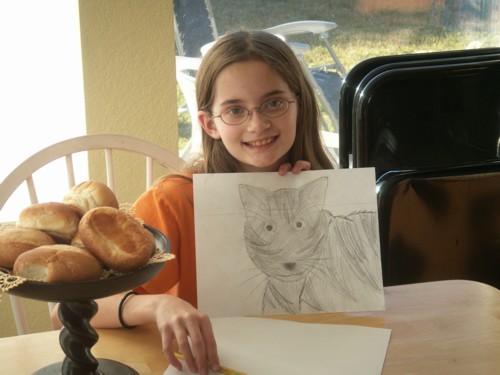 Sarah has lost her two lower front teeth, but ate with gusto.