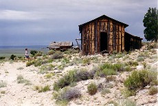 Ann is viewing the old mine shacks.