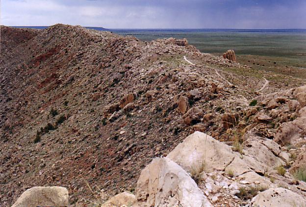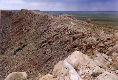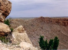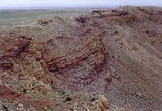 Panoramic view of meteor crater along south rim to east rim.
