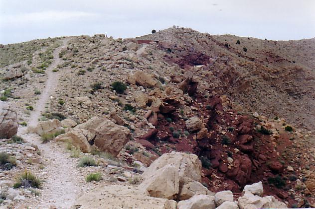 The final part of the trail! The outlook platform is visible. Note the tourists on the high point beyound the headquarters. That was the point from which the first photos on page 1 were taken.