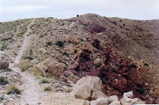 South rim. The red streak extends from the center to the lower left corner. Rock outcropping beyound the streak is not as prominent in this photo.