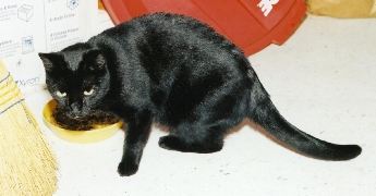 Rufus wasn't available for photos. A neighbor boy found Rufus, who is as black as Winston. He stays in the back yard most of the time. There are lots of shrubs and trees and an old storage building there for him to enjoy. |