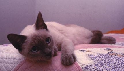 This is not a current cat. This is Windy in 1966, one of our original blue point Siamese. She was probably an ancestor of Twinka. |