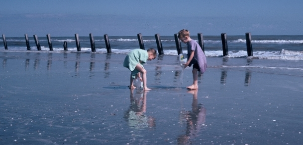 | Jimy and Louis on the beach at Galveston in March 1970. It was still early in the year and too cold for swimming. |