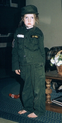 | Becky dressed in a military uniform. |