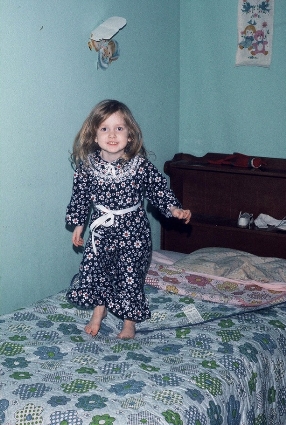 | Becky jumping on her bed, February 1971. |