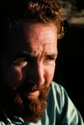 | Self-portrait made in February 1981 near my fortieth birthday. This was handheld. I was using the normal 55mm lens on the camera; a wide-angle lens such as a 28mm or even a 35mm would have been a little easier to aim and would have included a greater area which could have then been cropped as desired. Fortunately this didn’t need much cropping. This image does illustrate the high contrast of Kodachrome slide film. |