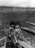 The nearby relatives were Grandpa’s widowed sister, Dove, and her three younger children. Her oldest son, Wendell, was grown and off to war. Her daughter, Hattie Pearl was about 19 and was like a sister to Momma because they had all lived near each other most of their lives. Momma was six years old when Hattie Pearl was born and she ran all the way from Grandpa's house to her Grandpa's house when they got word that Aunt Dove had had a little girl. They were all close and attended school together until Momma went to stay with her Uncle Noah's family so that she'd be in the Morrilton High School district. Hattie Pearl was on the basketball team and graduated in May of 1944. There were two younger boys who were like little brothers to Momma. George Wayne was 16 and James Luther was 13 This photo shows most of us over in the field in front of their house. We visited with them a lot at the old home place during 1944, 1945, and 1946. Years later James Luther later gave us his old 26" standard bicyle for me to ride, but that's another story. I originally guessed that this photo was taken in the fall of 1945, but I'm pretty sure now that it was in the winter of late 1944.