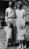 I'm not sure of the date of this photo but, based on the apparent ages and the sun angle, it may have been in May 1944 on Decoration Day. The young teen is Aunt Dove's youngest child, James Luther Martin. He would have been almost 12 years old. Jeanne is standing by him and she would have been two in 1944. I'm standing by Marvine, who was Aunt Kate's only child and as close as a sister to Momma. She would have been 19. That looks like Sammie Lou Maxwell in Marvine's lap. She would have been a little over a year old in 1944. Sammie Lou was Uncle Noah's youngest child. His oldest child was a daughter a year older than Momma. Those two sisters formed the 'bookends' of Alvus Maxwell's grandchildren. The fact that all these cars were parked in the yard is another clue that some big family event was taking place. Marvine, James Luther, and Sammie Lou were first cousins. James died in the late 20th century while still a young man. Marvine and Sammie Lou were still living in 2005.